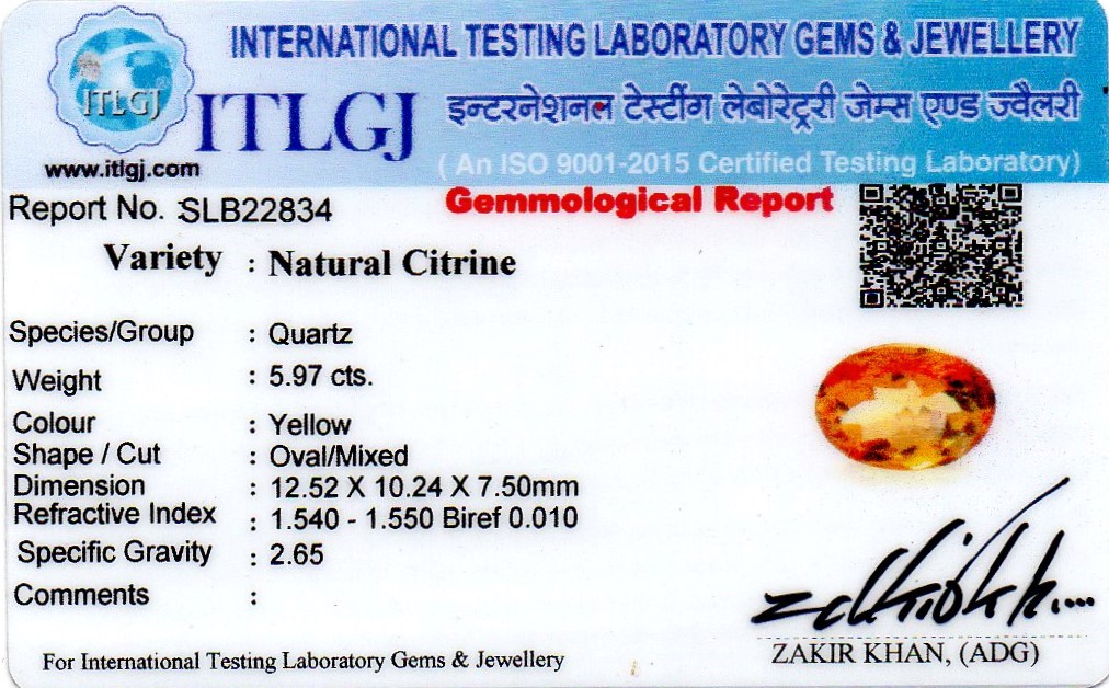 Yellow Citrine Natural Certified 5.97 carats -834